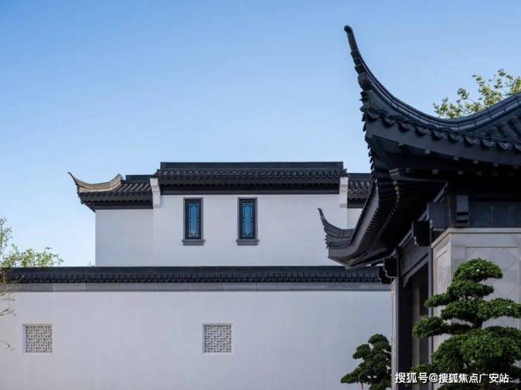 白墙,能大面积反射阳光,让“光与建筑”产生一种明快的互动关系;黑瓦,应对江南夏天高温高热,而黑色恰好能够吸收阳光,起到隔热的效果;飞檐,则是依照南方多雨的气候。雨落在高翘的飞檐上能抛得很远,也就减少了对建筑基础的损害,高低错落,呈现出舒展的韵律之美,结合景观,自然地形成“山水”意向。