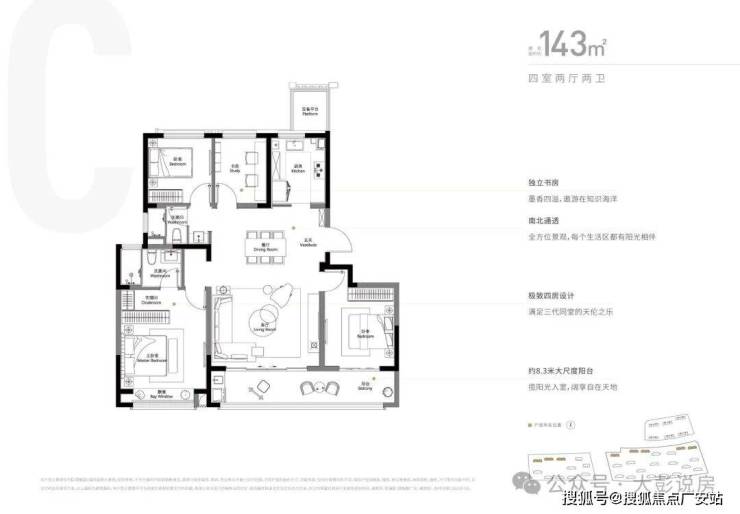 二期在售产品:建面约110㎡、130㎡、143㎡