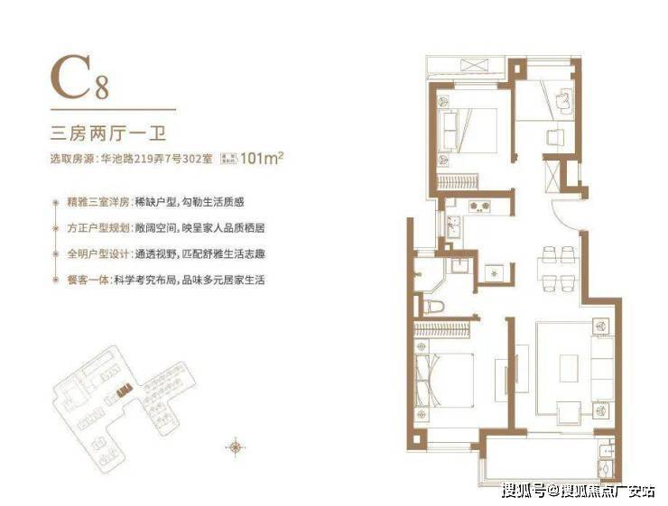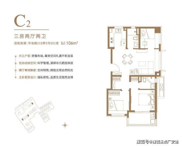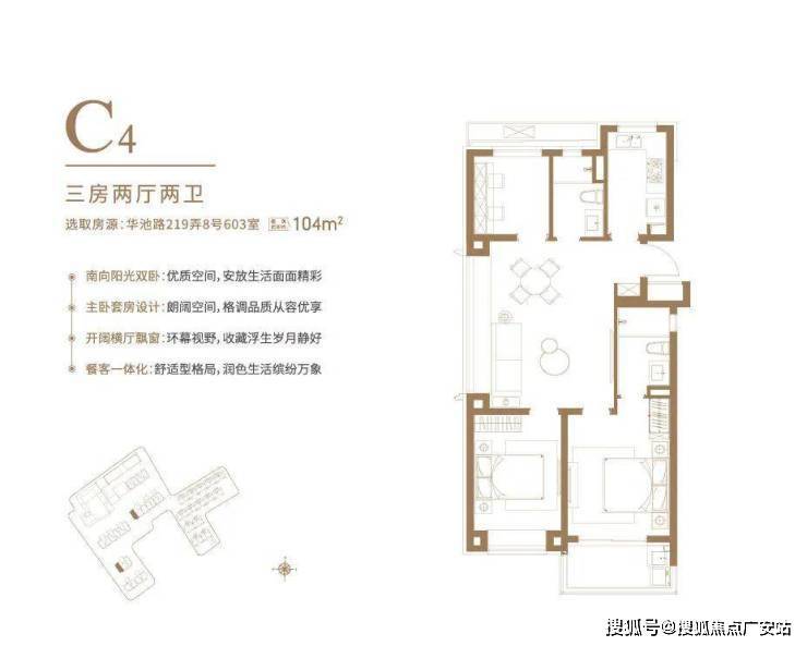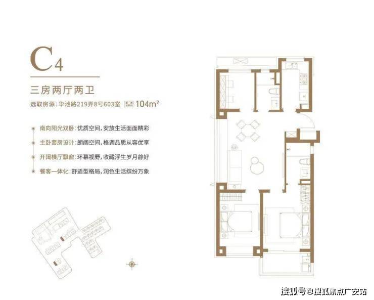 户型设计灵动,目前开放了104㎡3房2厅2卫和103㎡3房2厅2卫样板间,可谓是各有看点: