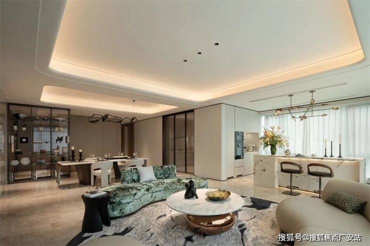 以空间收纳欢悦的时光,为生活赋予艺术的慰藉。约270°环幕社交三联厅,相连开合厅,通过空间的布局和光影的配合,场域与场域的贯通,营造为充满艺趣的社交场景,混合交叉又充满个性,开合之间,私密会客、开放式交流,家庭成员的个性需求,都一一得到照顾。