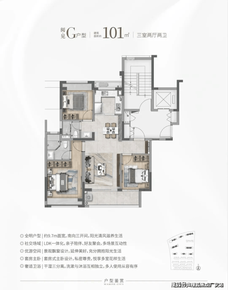 特别是这个E户型,建面仅约90㎡对于想住叠加但预算有限的购房者来说面宽约6.45米,上下动静分离带是个不错的选择!