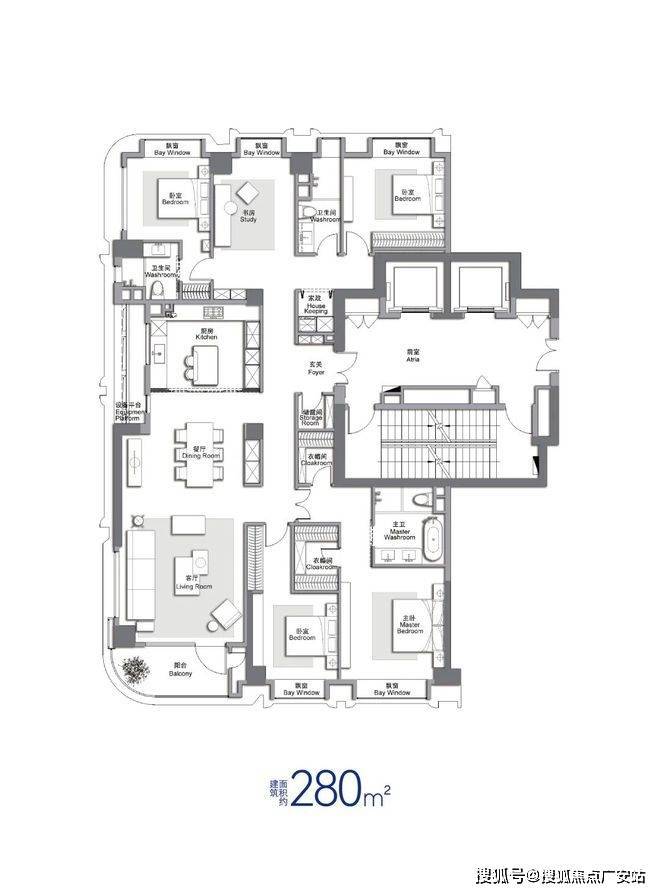 280㎡4+X房:内环内·大师定制艺术·全功能性奢宅;边套270度舒适采光,超大舒适厨房,五房空间尺度、可根据自身需求调整功能;3700-4000万,尊崇功能五房,满足现有市场多孩客户需求,可随时更改室内功能性;客阳台一体,边套270°舒适采光;