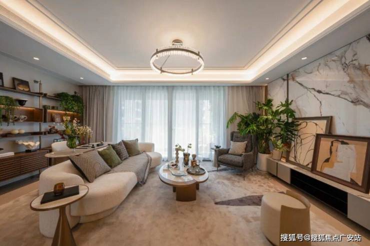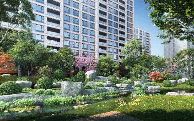 在景观打造方面,项目风格是新海派风格,特点是延续海派文化的典雅格调。整个社区采用“一环”“两轴”“三园”“六院”的空间结构,展现现代海派的精致人居空间。