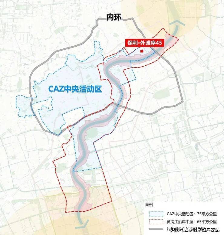 【保利外滩序】BUND45,占据滨江中层范围,内环内,距离黄浦江直线距离约500米,CAZ中央活动区范围内,能级之高在黄浦江滨江带中也名列前茅。