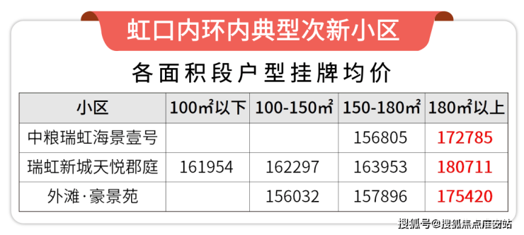 据链家网最新数据显示,项目周边的典型次新小区,比如瑞虹新城天悦郡庭二手挂牌均价约16万/㎡,中粮瑞虹海景壹号二手挂牌均价约17万/㎡。