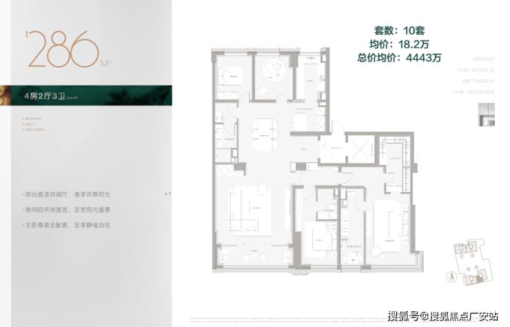 1.四卧均带独立卫浴,南向双卧为「超级套房」