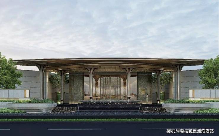 雅艺柔美的对称式住区入口,通过空间的仪式感与秩序感,营造低调奢华、内敛尊贵的归家体验,弥漫着不彰自显的“腔调”,既呼应了整体场地的自然氛围,又营造出奢华与前卫并存的视觉冲击。