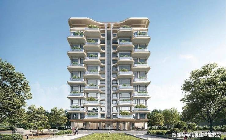 厦门凤鸣雅颂项目则将四代住宅立面设计巧妙融入自然生长的内核。建筑外立面的 弧形倒角如藤蔓般自基座向上舒展,柔和的曲线既消解传统棱角的冷硬感,在曲面与光影的交织中演绎植物破土而出的生命张力。
