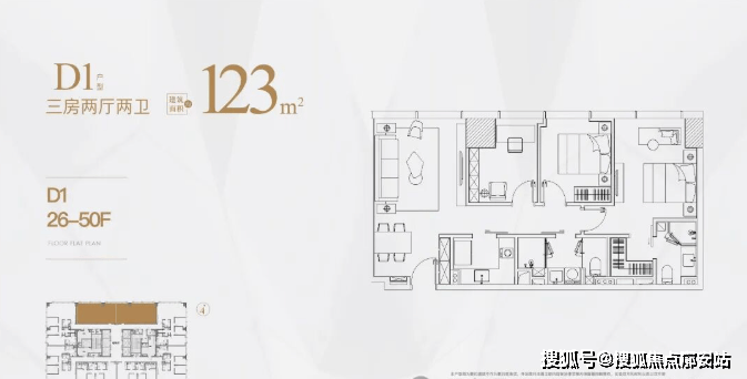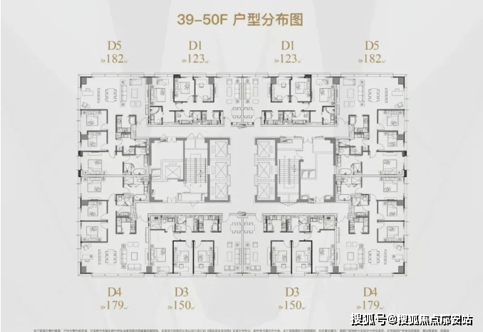 高区为39-50层,户型分别是125㎡,150㎡,180㎡。