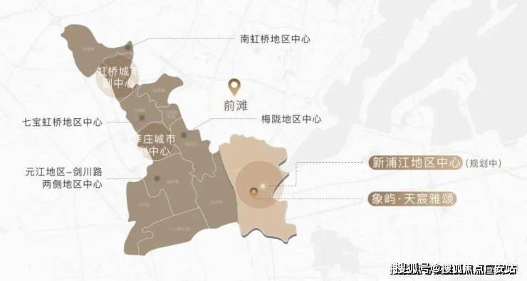 闵行2035规划,有前湾、七宝、梅陇、元江-剑川和浦江五个地区中心。