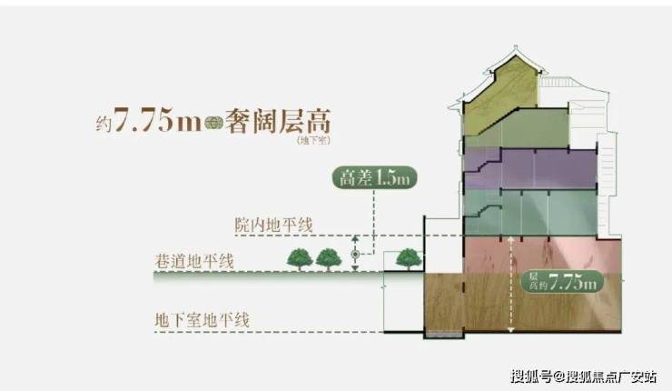 排屋地下室约7.75米,「首层化」地下室的创举性设计。