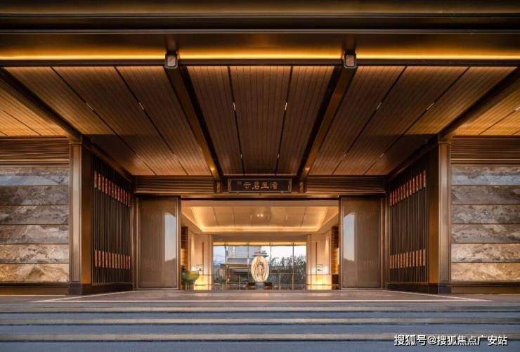 建发式的王府大门又作了创新,以悬浮式双檐构筑约11米高的仪式门庭,含景墙的大门宽幅更是达到了约68米。