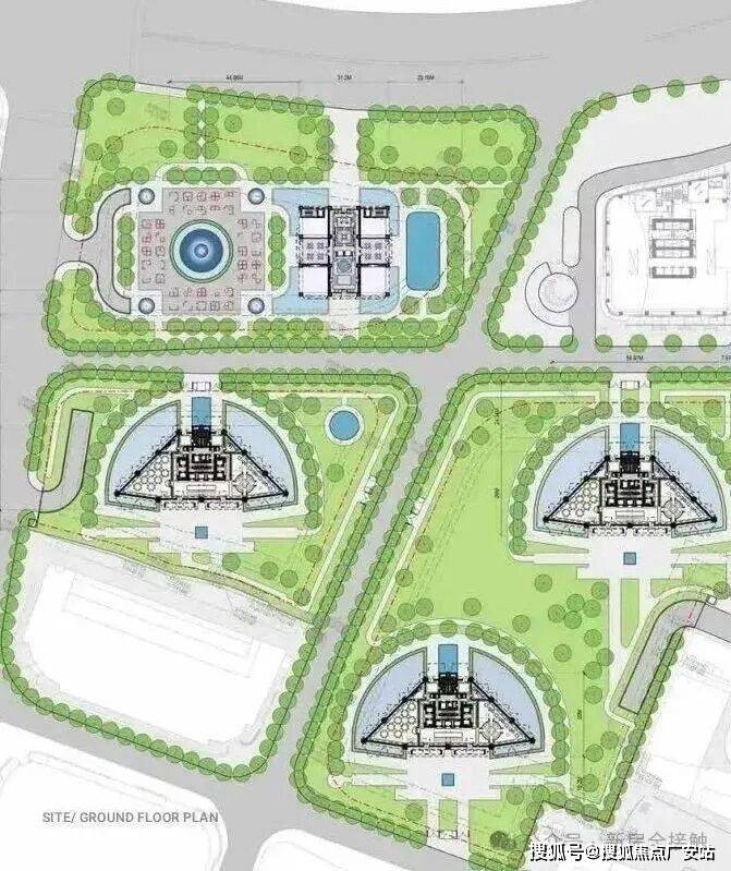 从建筑的外部来看,整个建筑在设计上采用了底层超高架空,第一层的大堂被水景包围。