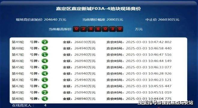 3月3日,上海2025第二批次土拍,经过49轮竞价,招商蛇口以266030万元的总价摘得嘉定新城远香湖F03A-4地块,溢价率30%,成交楼板价约31850元/㎡。