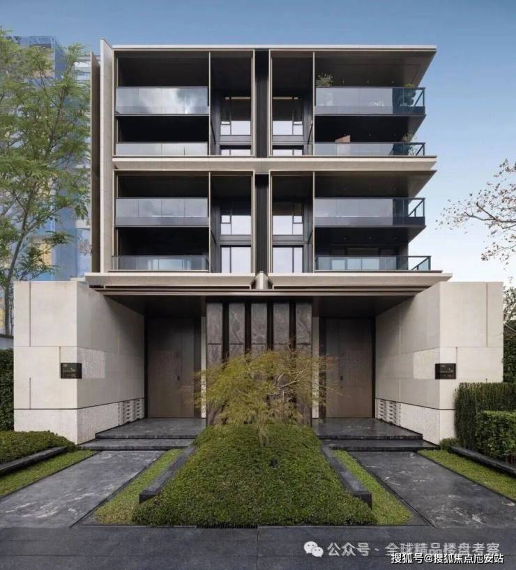 叠墅建筑立面材料则以石材+香槟金色铝线条为主,首层层高3.9米,常规楼层层高3.5米,私梯入户,下叠带花园。