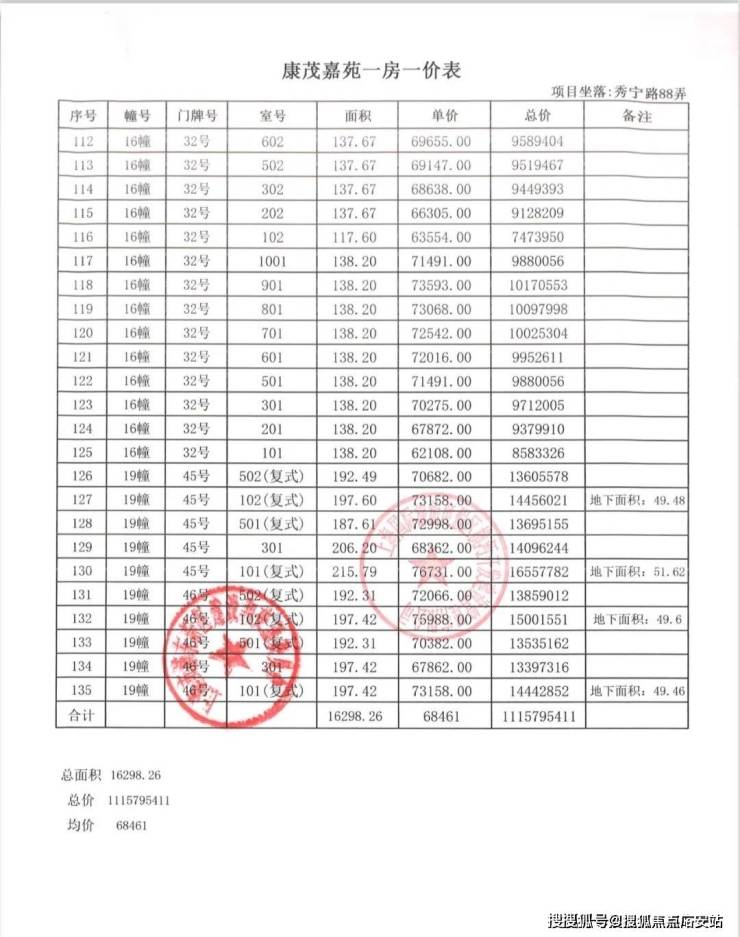 一房一价表如下: