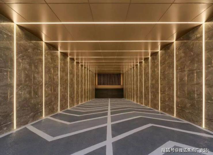 与此同时,车库入口也是以希腊灰奢石岩板+铝板+金属格栅打造而成,并且坡道设有发光灯膜,当车子驶入时,灯光逐排点亮,让回家如同穿越星空般梦幻。