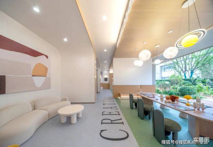 我们可以看到开放式的童趣伴盒,室内是趣味家具、丰富游乐设施等组成的沉浸欢乐场,室外是富有野趣的户外植物认知园。