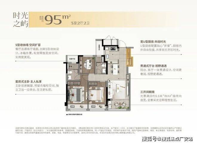 建面约95㎡的三开间朝南户型,从进门处就有巧思,特殊设计的“S墙”,正好可以将冰箱内嵌,为厨房省去一大块空间,墙面还能照样拉平,美观且实用。
