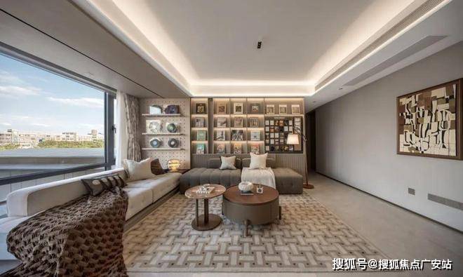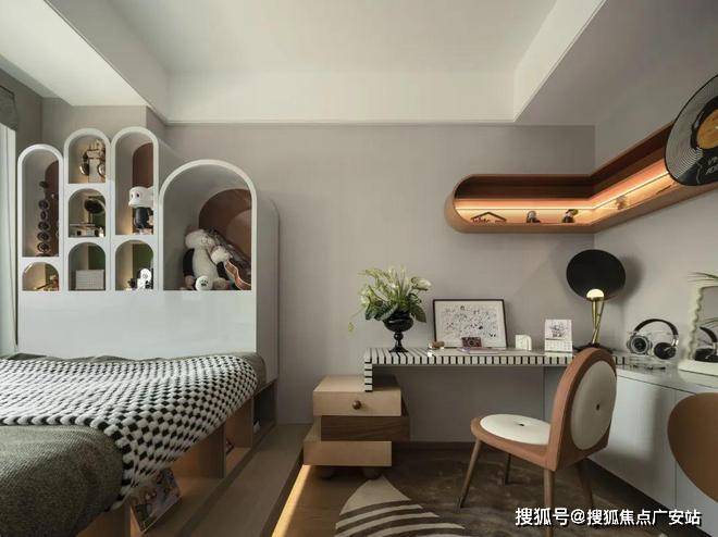 你也可以在餐客厅中加一扇L型隔断,将整套房子变成“3+1”格局。玄机仍在阳台,它不是一条线拉平,在向外凸出的一角,足以隔出一间约2.2*2.2米的茶室、书房,或是儿童游戏区,成为无限灵活的“MAX空间”。