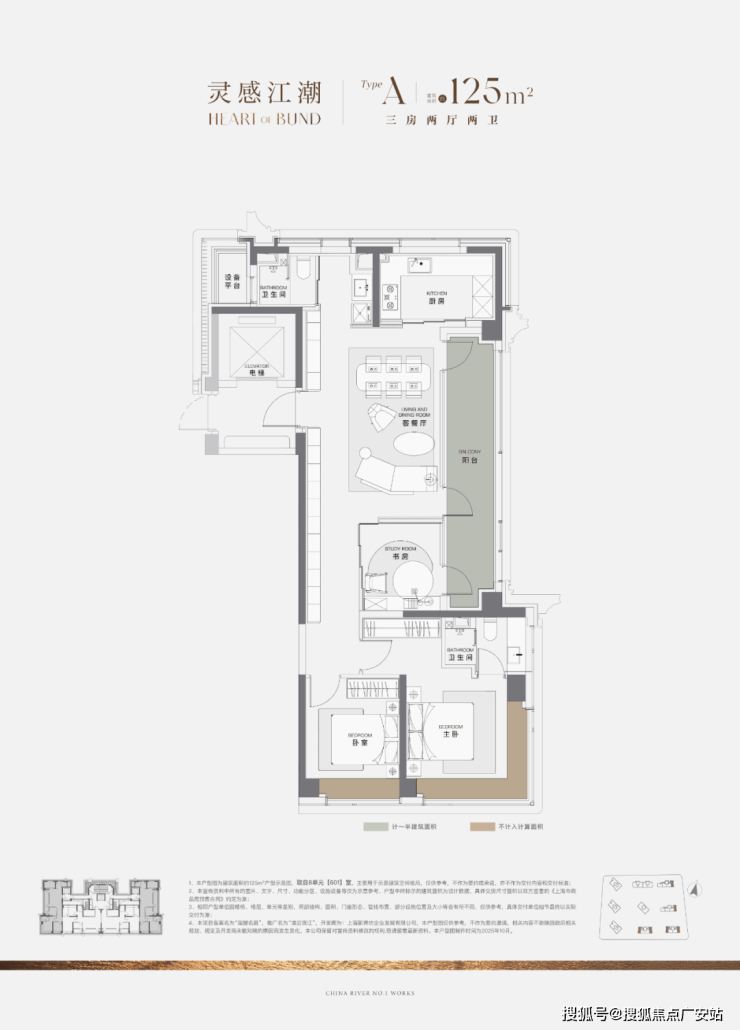再看建面约125㎡户型: