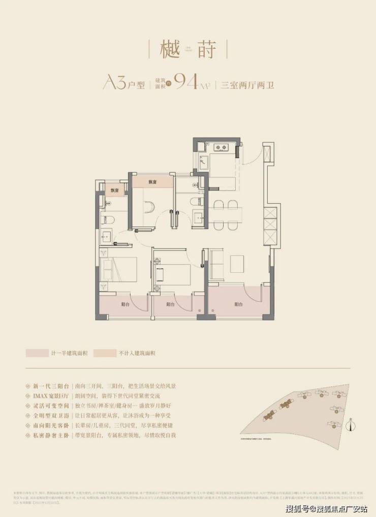 建面约94m3房2厅2卫