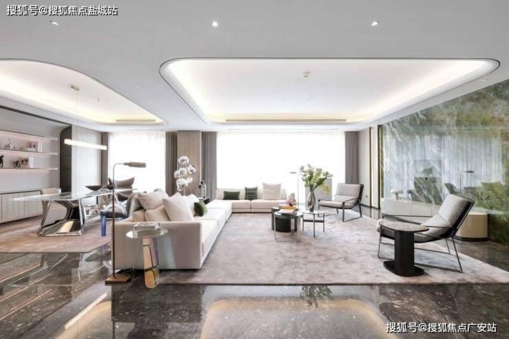 在建筑外部立面,采用整栋楼纯石材干挂与玻璃幕墙结合,庄重的价值感与现代流线融合出经典之美。多玻璃少墙体的设计,也让整个室内空间拥有了360°的全幕环景视野,将窗外的纯正法式两大中央景观公园坐收眼底……一层一户的大胆设计,追求的是居住者的绝对享受,大平层的居住真谛,在丰盛九玺被诠释得淋漓尽致。