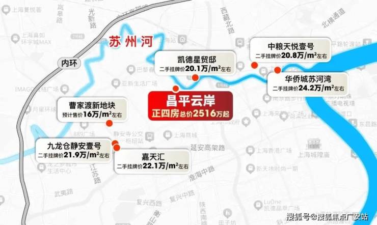 老静安核心地段,南京西路约1公里!苏州河第一界面,昌平云岸-在售少量豪装大四房,总价约2516万起!