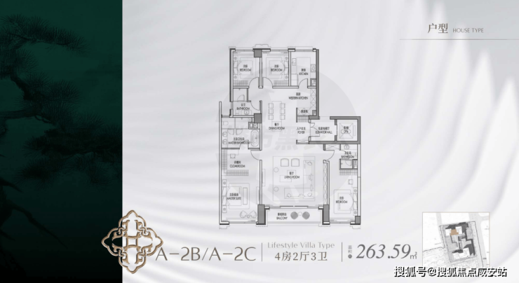 B住宅:约3.8万㎡高层产品,共177套,套均面积约216㎡;