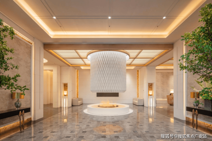 再往里走就是迎宾区,整个公区部分由世界顶级的奢华酒店设计专家CCD负责设计,4.5米的层高直接打造出了顶奢酒店的质感。
