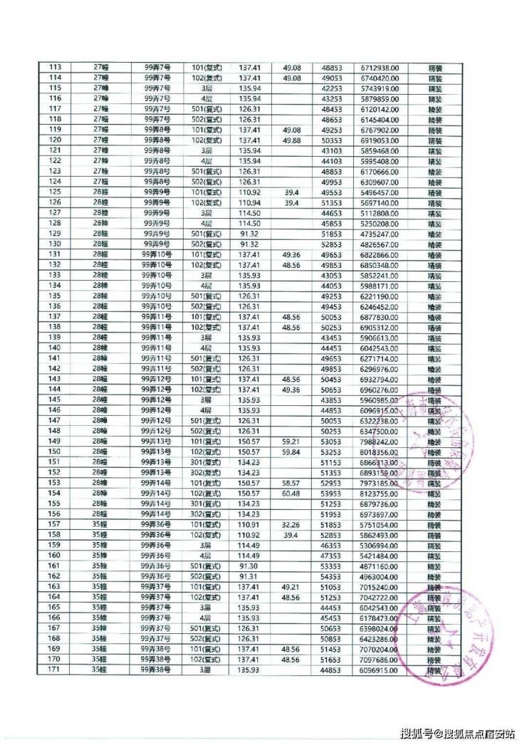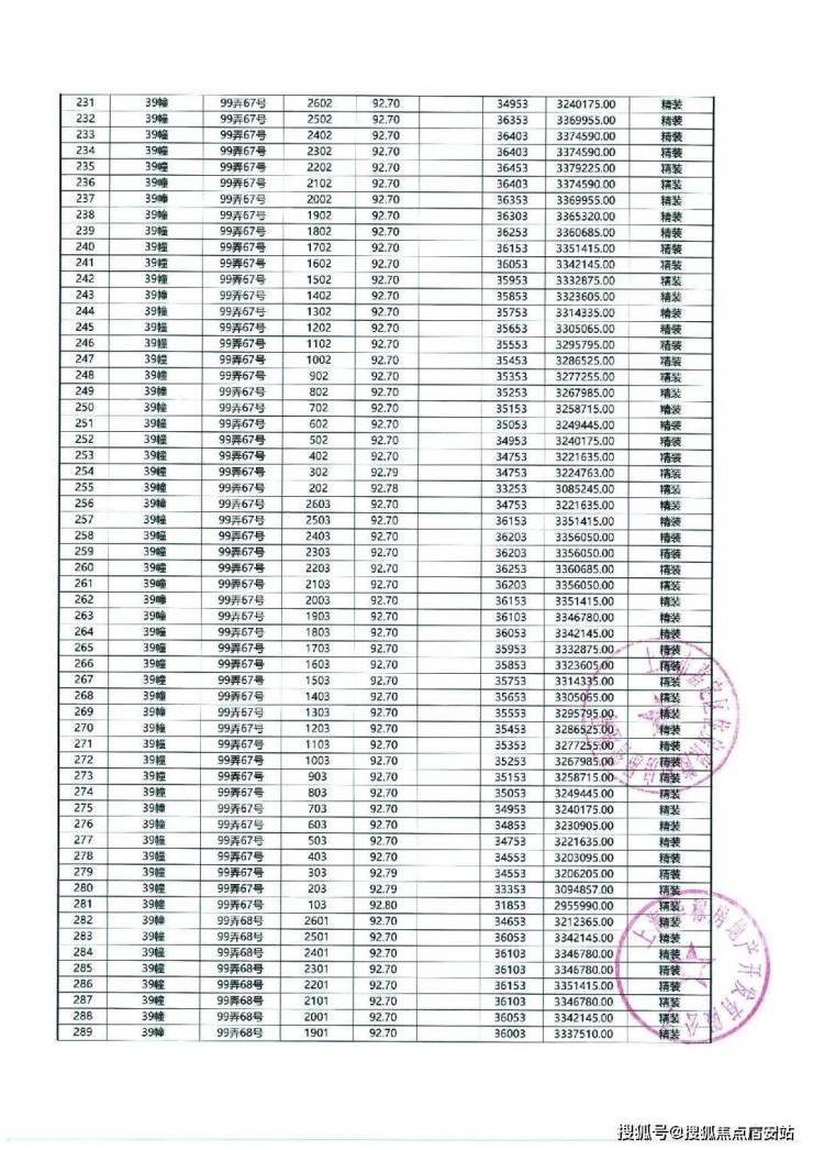 以下为项目最新一房一价表