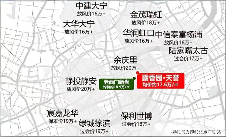 5.价格优势明显:相较于同板块其他高端楼盘,露香园天誉在价格上具有明显优势,同时项目的高得房率、顶级精装标准与全维配套,进一步提升了项目的性价比;周边次新二手房成交价已达16-17万元/㎡,而项目凭借稀缺性与产品力,18.5万元/㎡的均价形成了“价值高地”,未来升值空间巨大。