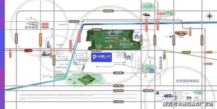 规划 14 号线同济站约 300 米,近 11 号线昌吉东路,自驾快速直达虹桥、市区