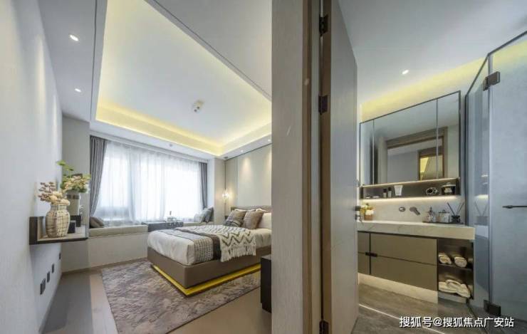 往南走去, 三开间均朝南,搭配 “4飘窗1阳台”的延伸设计,无论是采光、视野还是通风效果都达到了极致。 主卧的套房设计则进一步提升主人日常的舒适度与私密性!