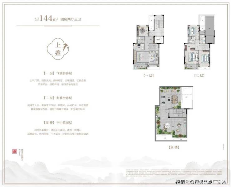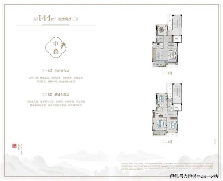 【主力户型】伴山叠院建筑面积约144㎡、城市合院建筑面积约187—195㎡