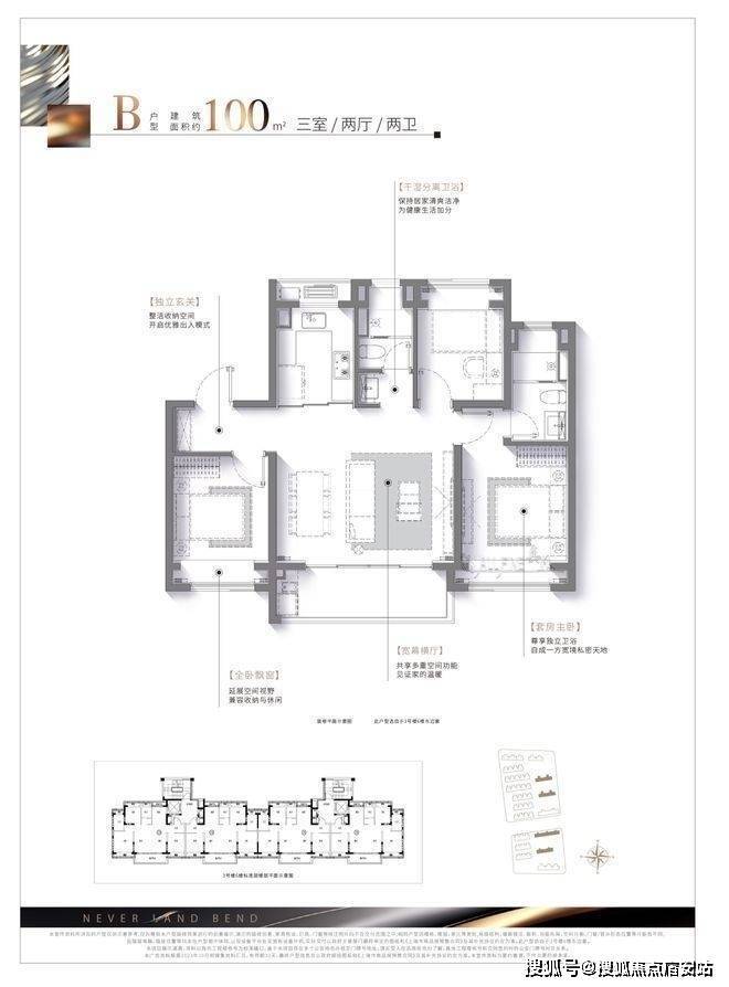 建面约100㎡的三房两厅两卫户型,可以说是约96㎡3房的升级版,招商云澜湾楼处电话☎:400-9692-958空间更加延展,整体横厅面宽约5.2米(轴中距),形成更大的南向采光面,且搭配南向观景阳台,直接做到了3.5面宽朝南,这在同类产品中是比较少见的。招商云澜湾售楼处电话☎:400-9692-958招商云澜湾售楼处电话☎:400-9692-958