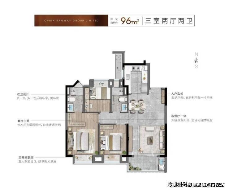 如建面约89m²三居,南向三开间可达9m,做到了市场上难得一见的双卫空间,让89㎡的实际空间功能直接对标“百平户型”,但总价却可以控制在200万出头;