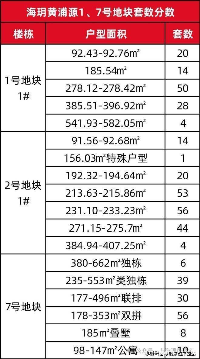 上海建工黄浦新项目「海玥黄浦源」1号地块超高层住宅、7号地块风貌别墅,大致的户型套数分布如下