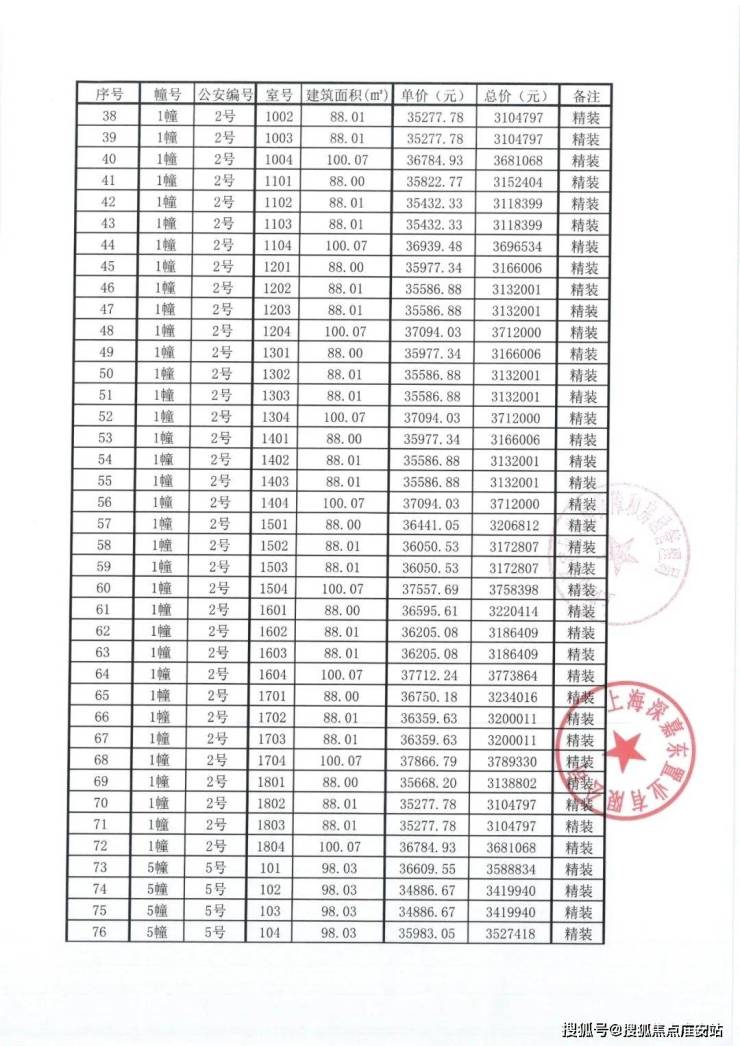 二期最新一房一价表: