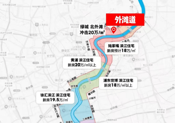 众所周知,上海的顶层规划设计围绕“一江一河”展开。但陆家嘴滨江、黄浦滨江、世博滨江、徐汇滨江的房价,无一不是18-20万/㎡起步。