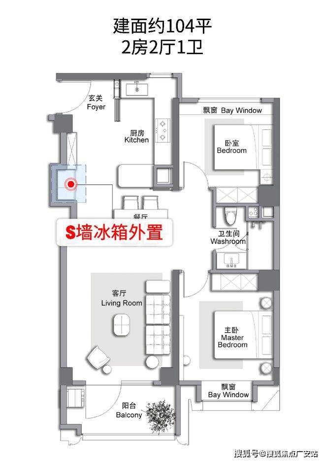 S墙设计巧妙释放厨房空间,实现冰箱外置;