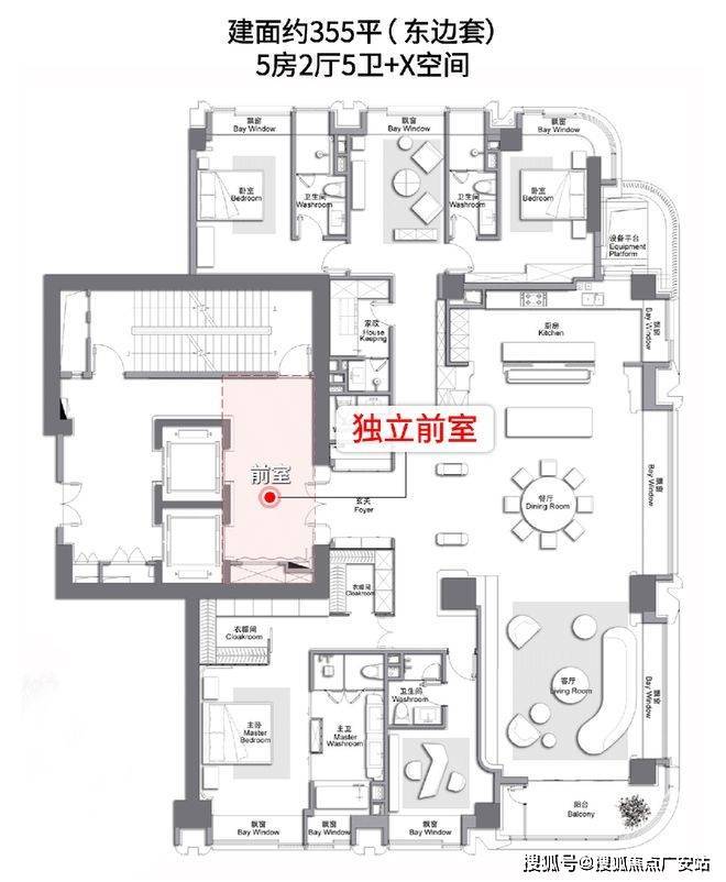 五室格局中,四间套房设计,满足大家庭每位成员对私密空间的需求;X空间可随家庭结构变化打造为游戏区、植物角、画室、化妆间等;北向次卧双侧采光,阳光满溢。