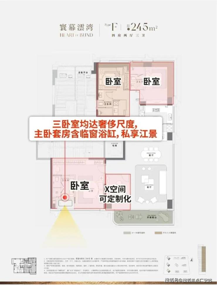 ④三卧全尺度奢适,主卧临窗浴缸瞰江!X空间定制方案可选,实现多场景布置!