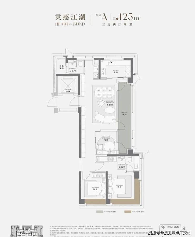 ①设计理念超前,125㎡级3房尺度媲美以往150㎡的大平层户型!