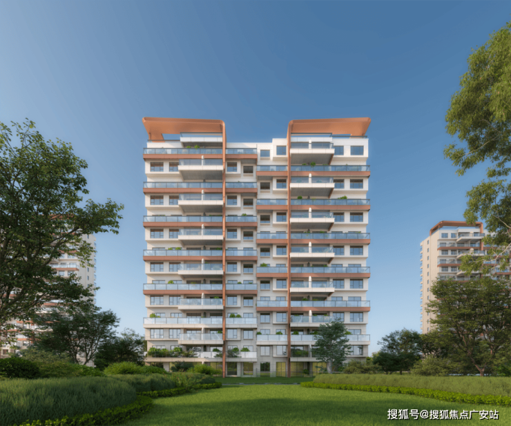 另外,标志性香槟色铝板线条勾勒出极具标志性屋檐设计,“展翅飞翔”造型挑檐给予归家尊崇体验。搭配大玻璃栏板,增强空间的通透感和自然采光,视觉非常震撼!