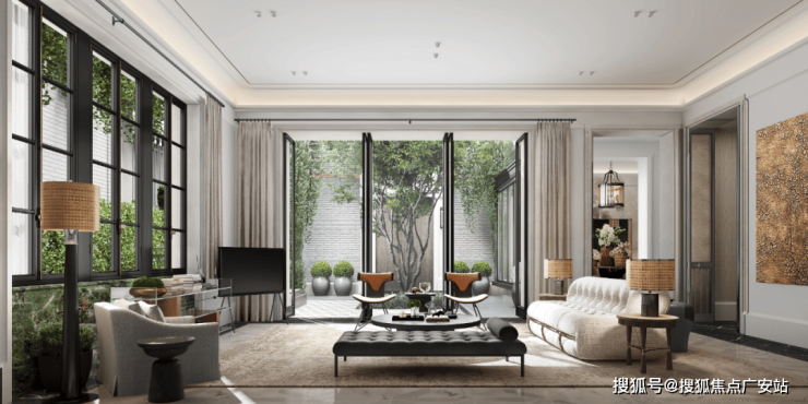 • 大面积落地窗,视线与光线延伸,内外之间阳光与分贝柔和过渡