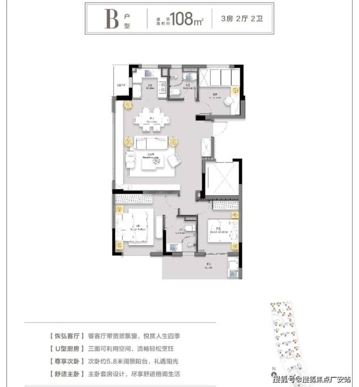 约108㎡户型点评:
