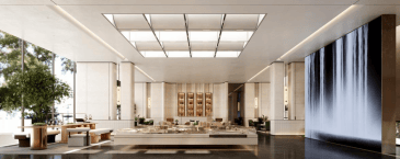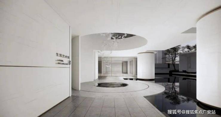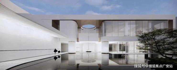 国创招商·琨悦里最初空间构型的出发点,是大水面与架空层之间的对话,是归家动线与美学体验的时空结合,是倦客归家时心灵的庇护。以及与之对立的,唯有此心无一物的空灵,而观者在两者间踱步。