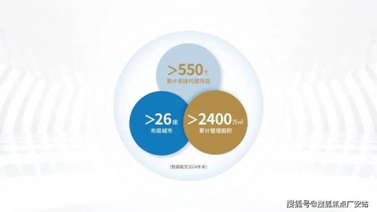 代建业务累计管理面积超2400万平方米,布局超26个城市、超550个项目,服务客户涵盖政府、各类大型企业等,先后荣获多项国际、国家、省市级荣誉奖项及委托方好评,奠定坚实品质保障基石。
