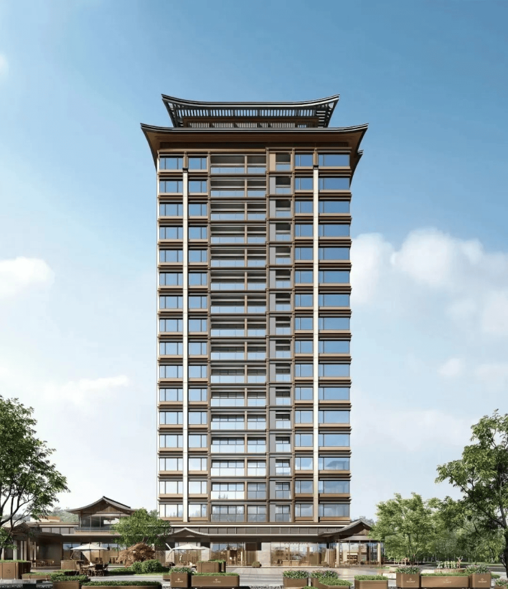 建筑采用三面铝板,搭配巨幕全面屏、连续性整体开窗,增大室内与江岸景观的打开面,创造更大窗墙比。